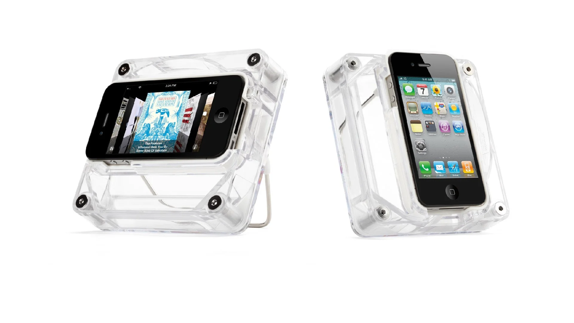 Imagine hearing your iPhone loud and clear, without using earphones or powered speakers. AirCurve turns your iPhone into a no-power-drain alarm clock on your nightstand, or a mini sound system that never needs batteries or adapters. This acoustic amplifier for your iPhone collects the sound from the built-in speaker of your iPhone, amplifies it in a coiled waveguide within the base, and projects it into the room. The waveguide has been engineered to deliver amazing amplification. Using a simple fold out kickstand it is designed to work in both landscape and portrait configurations.